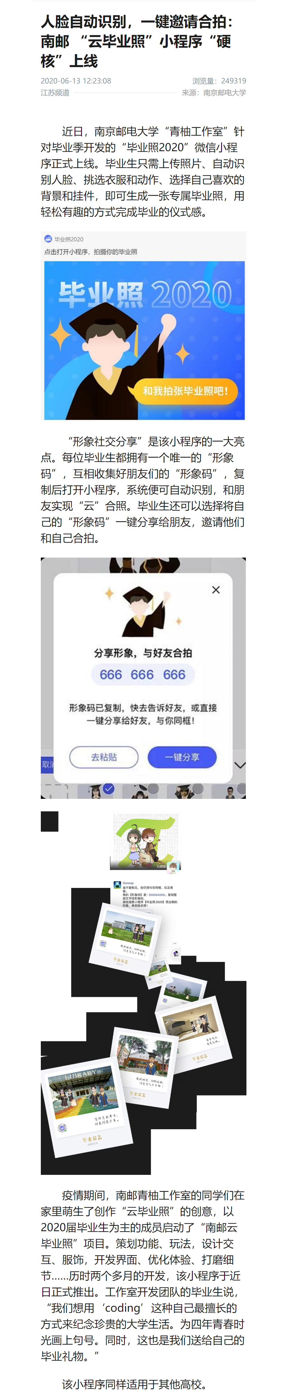 【新华社客户端】人脸自动识别,一键邀请合拍:南邮 “云毕业照”小程序“硬核”上线