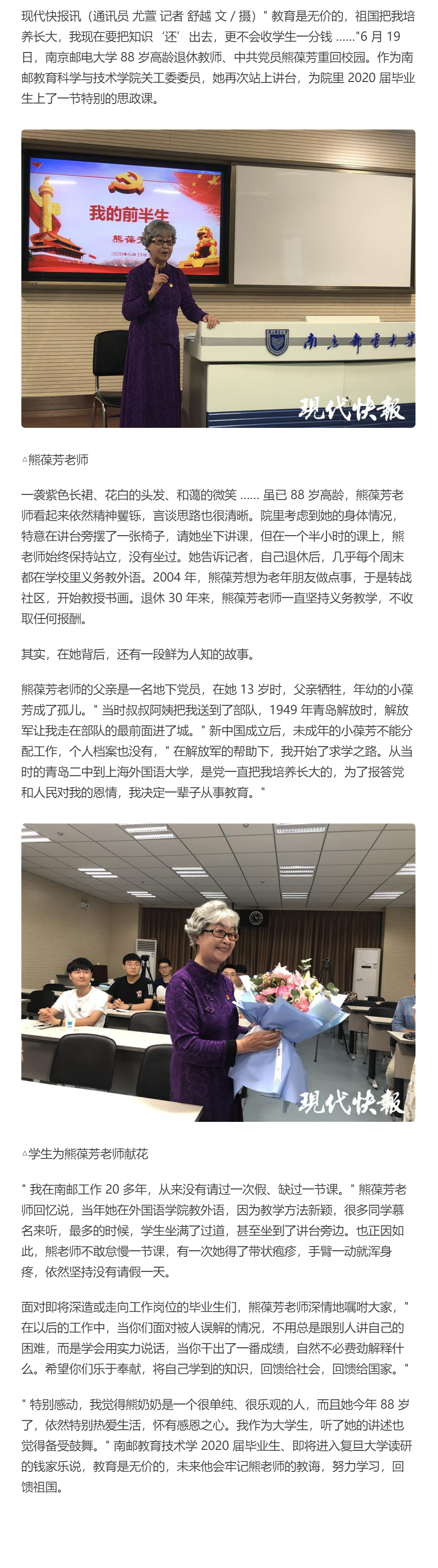 【现代快报网】南邮88岁退休教师重返校园,坚持90分钟站着授课
