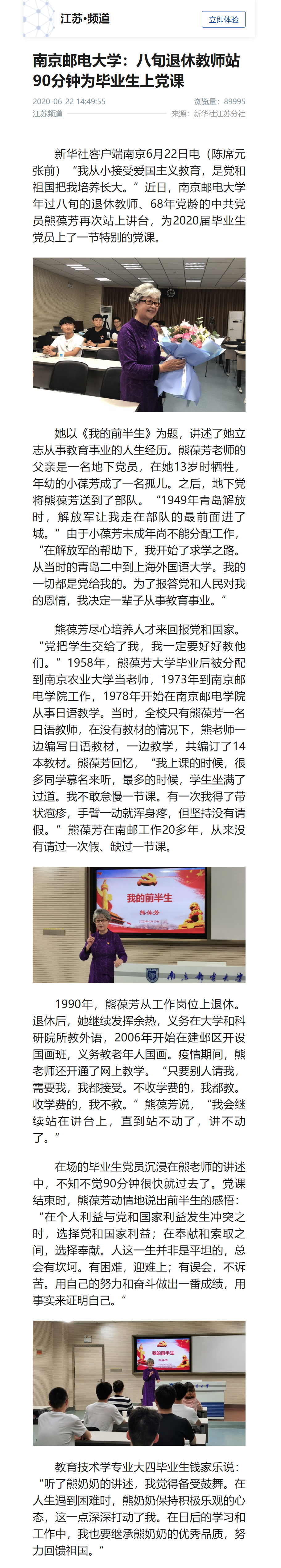 【新华社客户端】南京邮电大学:八旬退休教师站90分钟为毕业生上党课