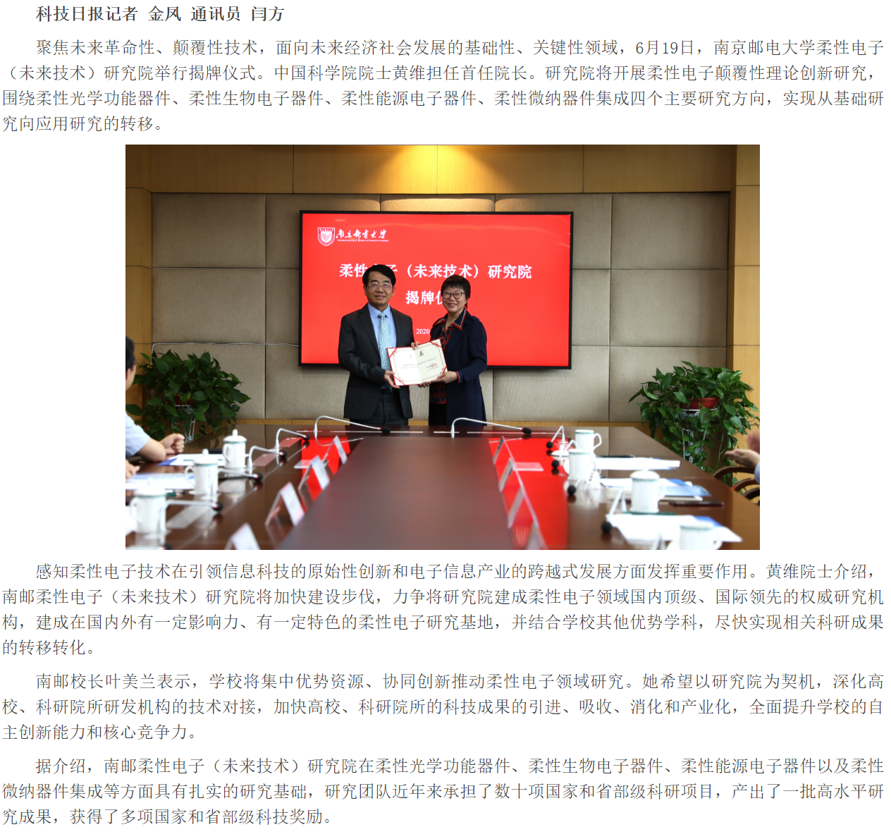 【中国科技网】柔性电子研究如何走向应用?南邮成立柔性电子(未来技术)研究院