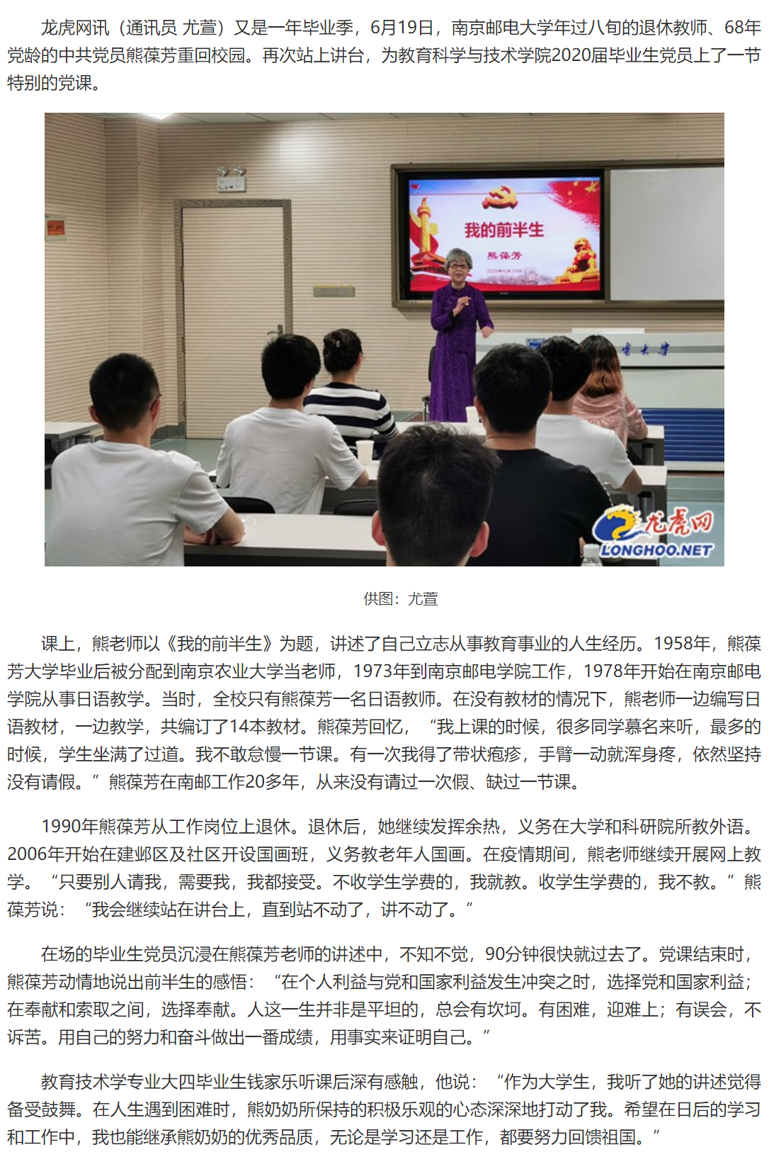 【龙虎网】南邮八旬退休教师重返校园为毕业生上党课:努力奋斗,证明自己