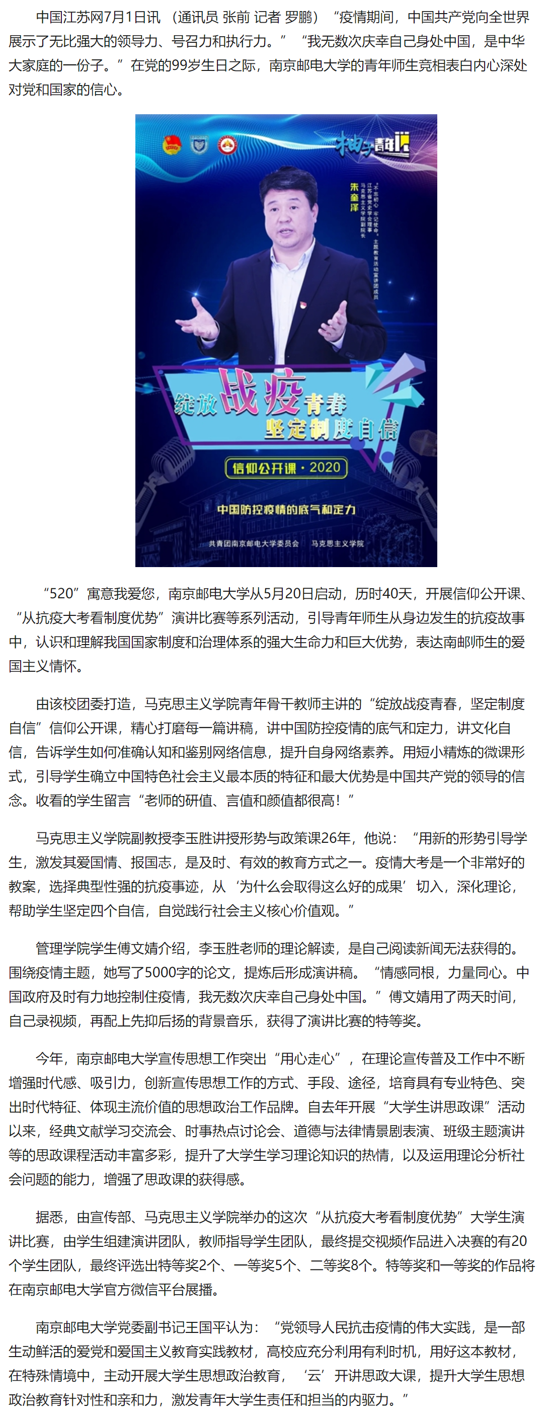 【中国江苏网】表白!南京邮电大学青年师生思政教育“用心走心”