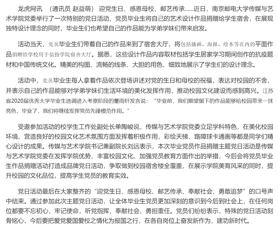 【龙虎网】抗疫画作扮靓学生宿舍 南邮党员毕业生将毕设作品留给学弟学妹