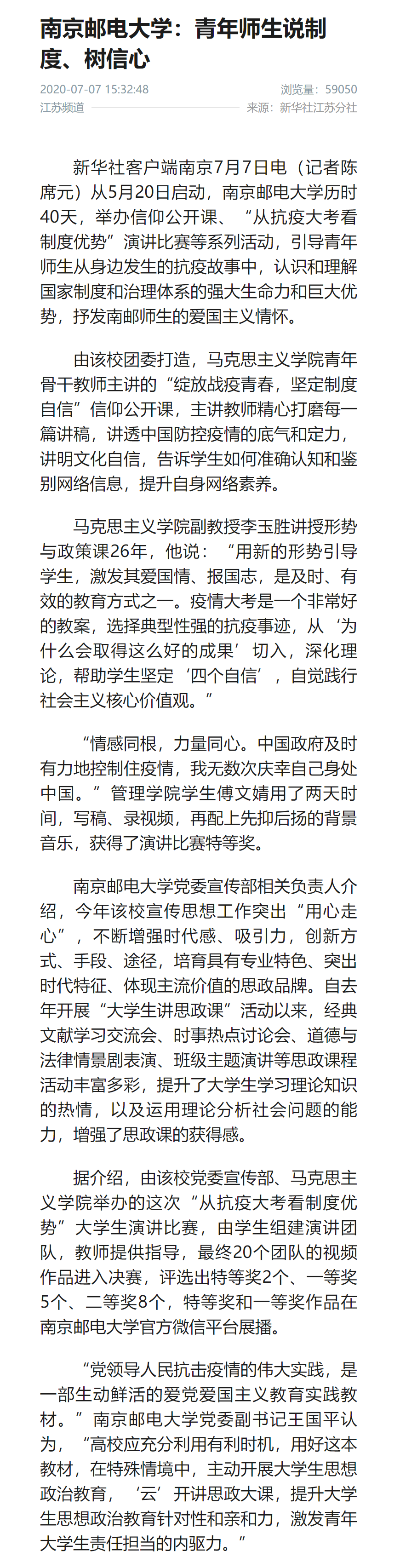 【新华社客户端】南京邮电大学:青年师生说制度、树信心