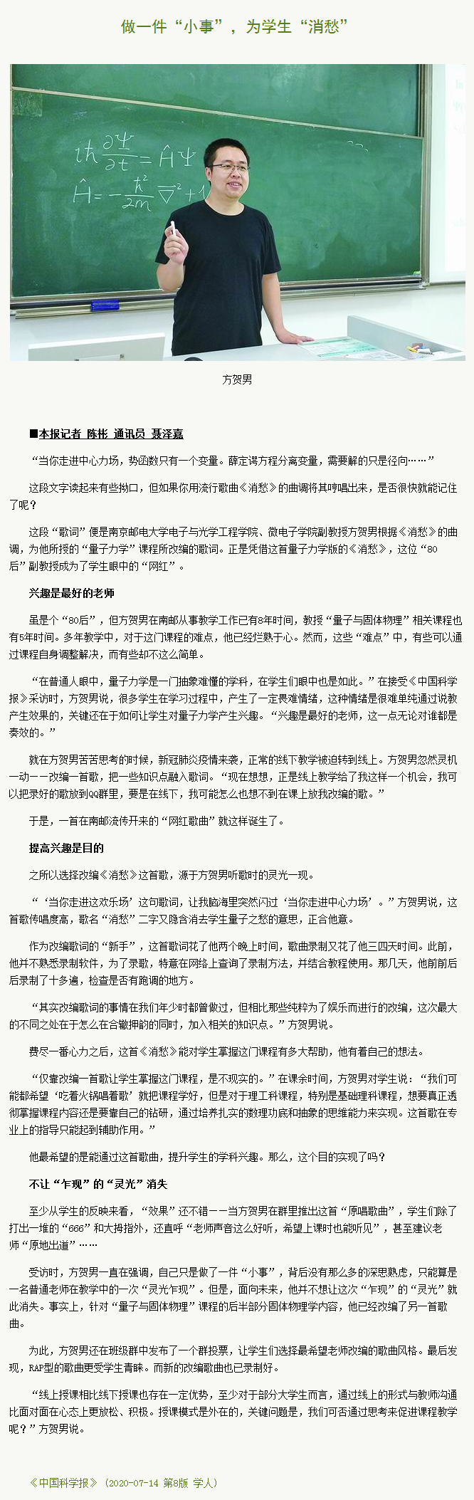 【中国科学报】做一件“小事”,为学生“消愁”