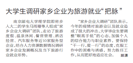 【现代快报】大学生调研家乡企业为旅游就业“把脉”
