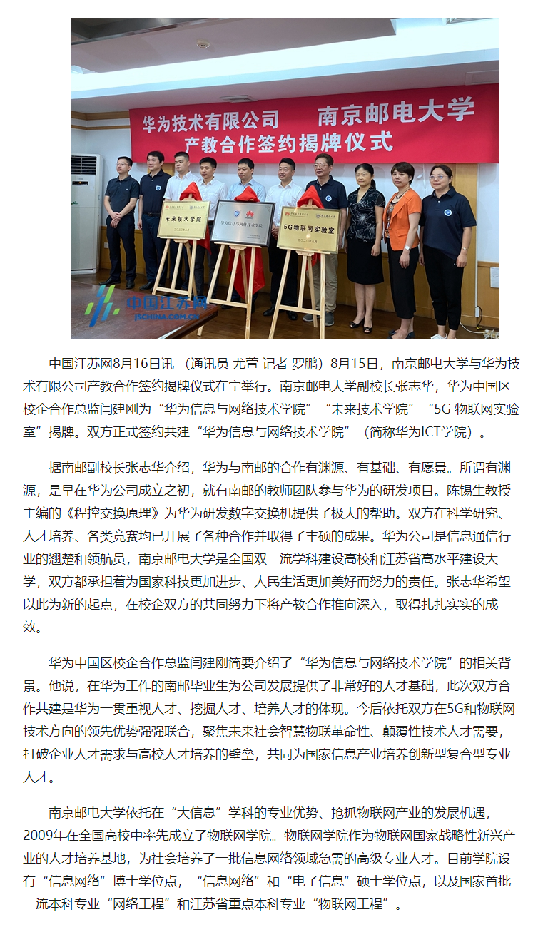 【中国江苏网】南邮与华为签约共建“华为信息与网络技术学院”