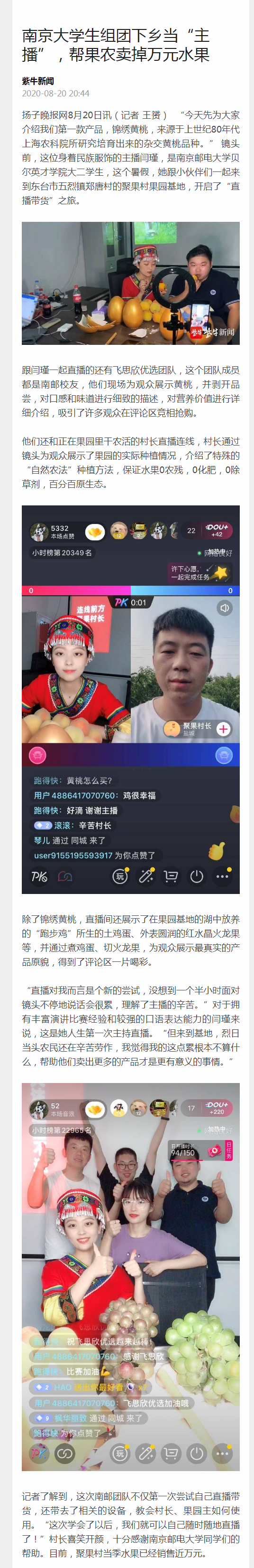 【扬子晚报客户端】南京大学生组团下乡当“主播”,帮果农卖掉万元水果