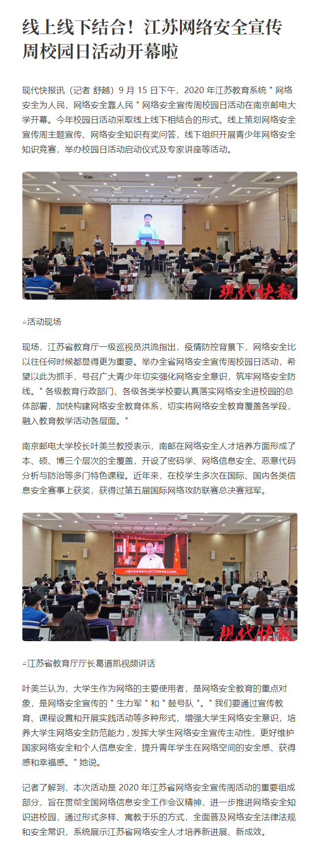 【现代快报网】线上线下结合!江苏网络安全宣传周校园日活动开幕啦