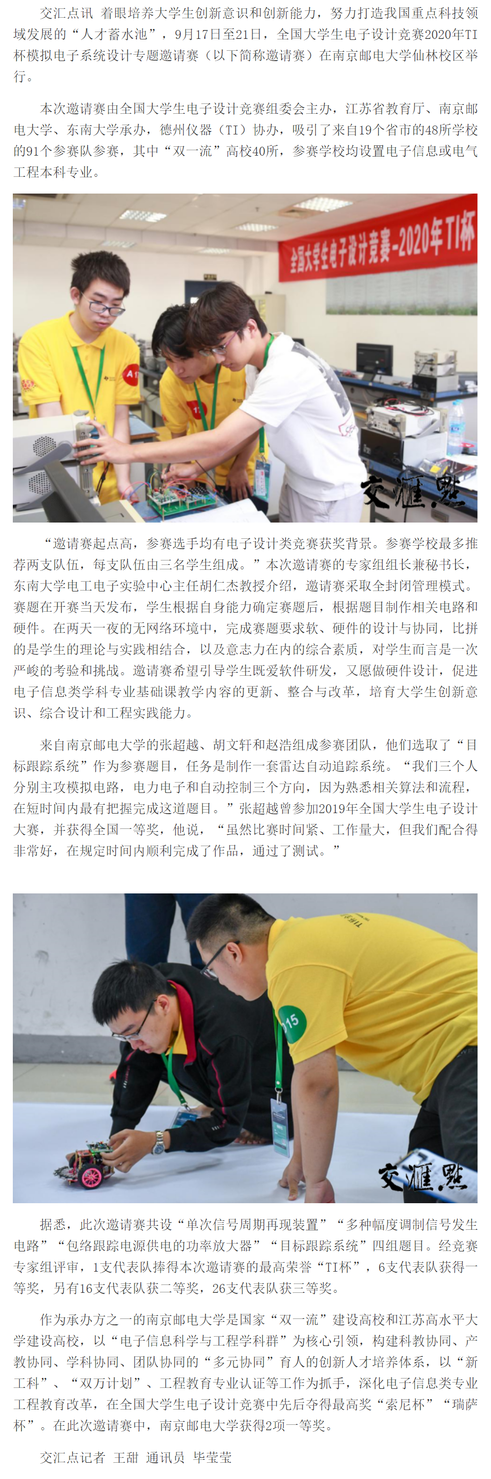 【新华日报客户端】90多支本科生队伍南邮显身手,“模拟电子系统设计”邀请赛圆满落幕