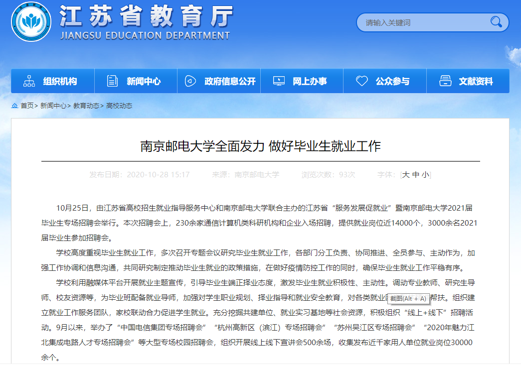 【省教育厅官网】南京邮电大学全面发力 做好毕业生就业工作