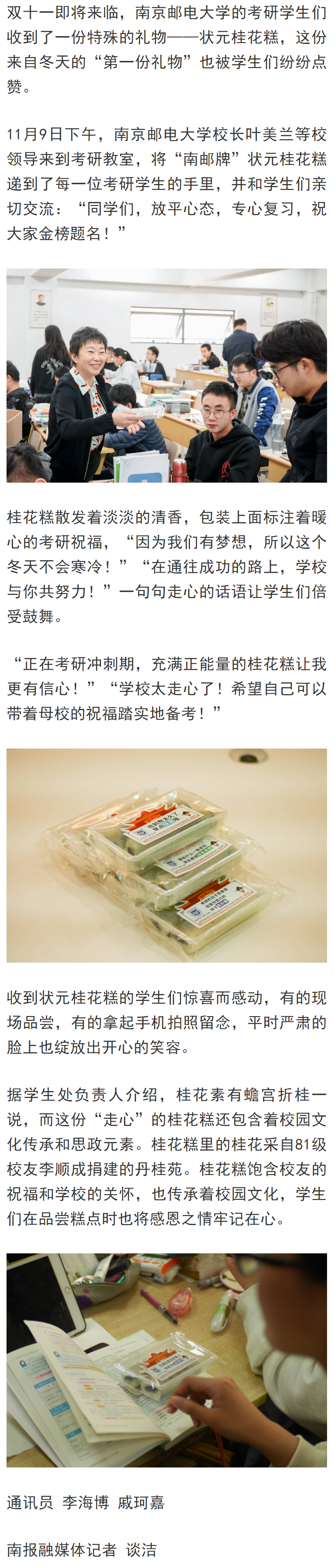 【南京日报客户端】双十一来了,南邮考研学子收到“状元桂花糕”