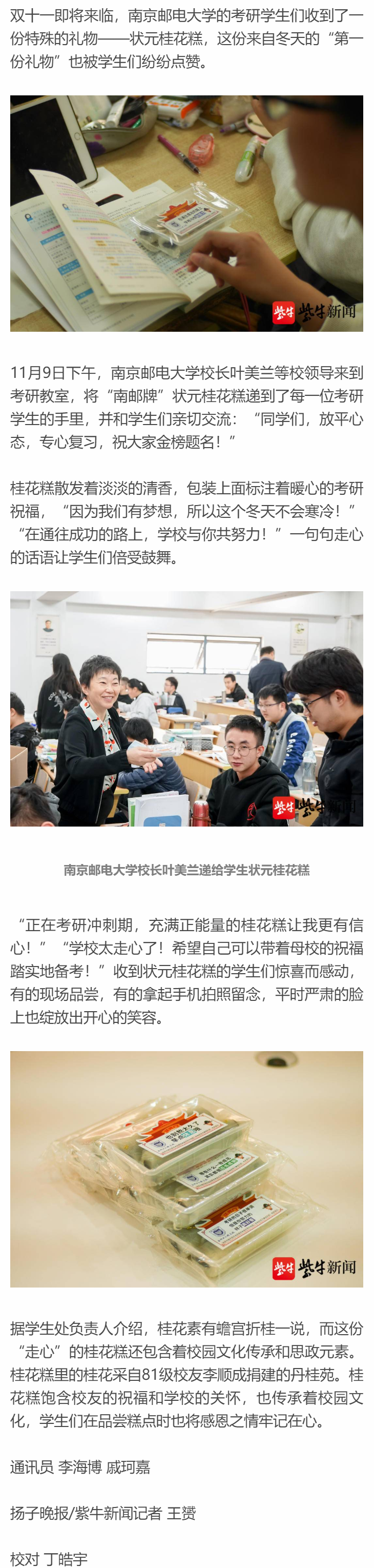【扬子晚报客户端】双十一将至,南邮考研学子收到了冬天的“第一份礼物”