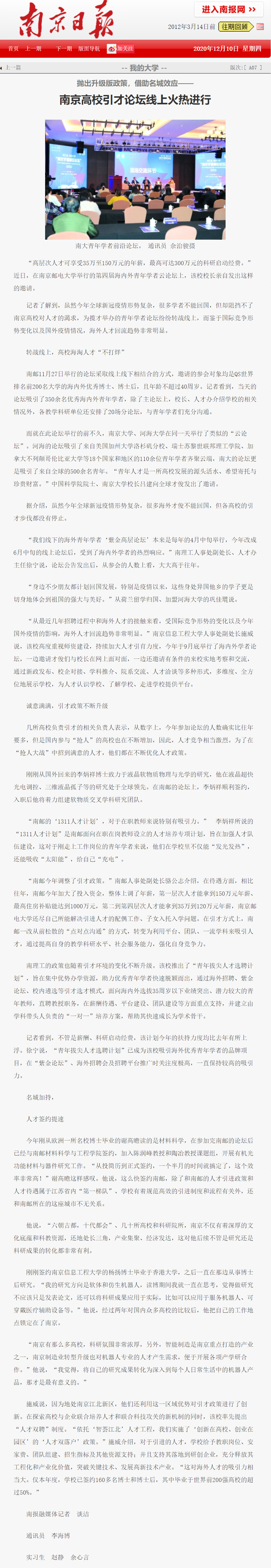 【南京日报】南京高校引才论坛线上火热进行