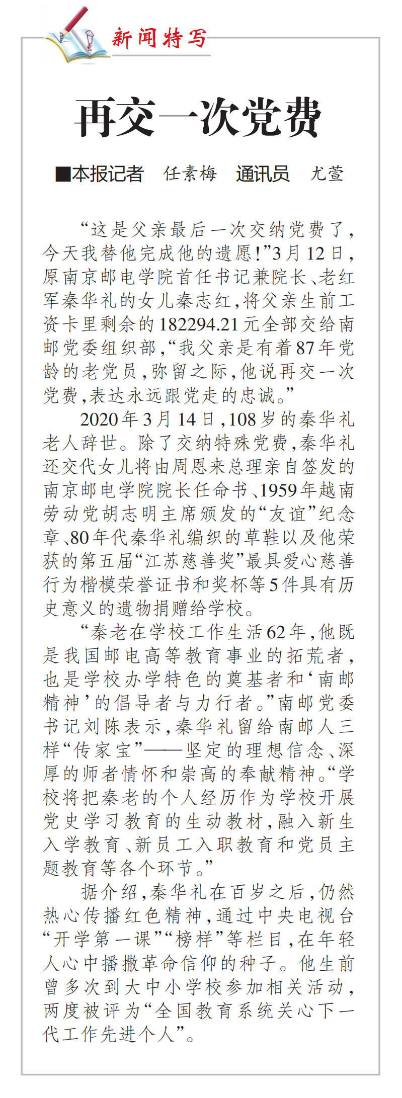 【江苏教育报】再交一次党费