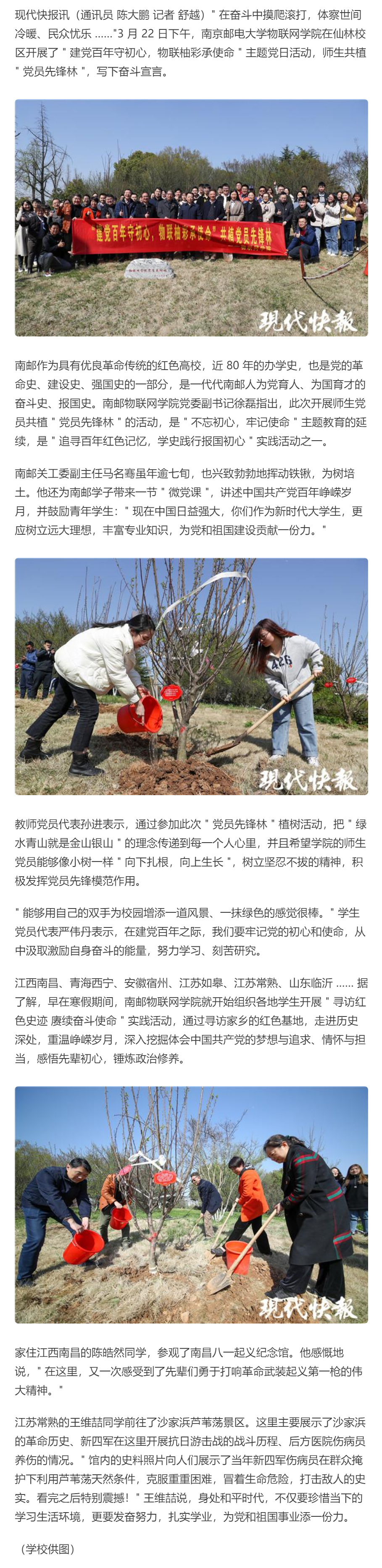 【现代快报全媒体】向下扎根,向上生长!南京一高校师生共植“党员先锋林”