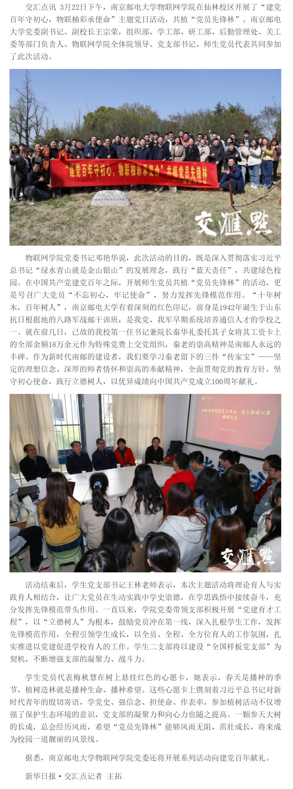 【新华日报客户端】建党百年守初心 | 南京邮电大学师生党员共植“党员先锋林”