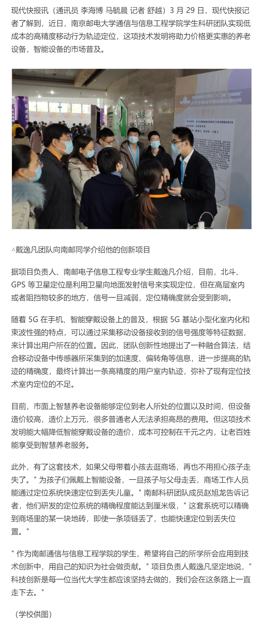 【现代快报全媒体】看护老人儿童,南京大学生发明低成本、高精度定位技术