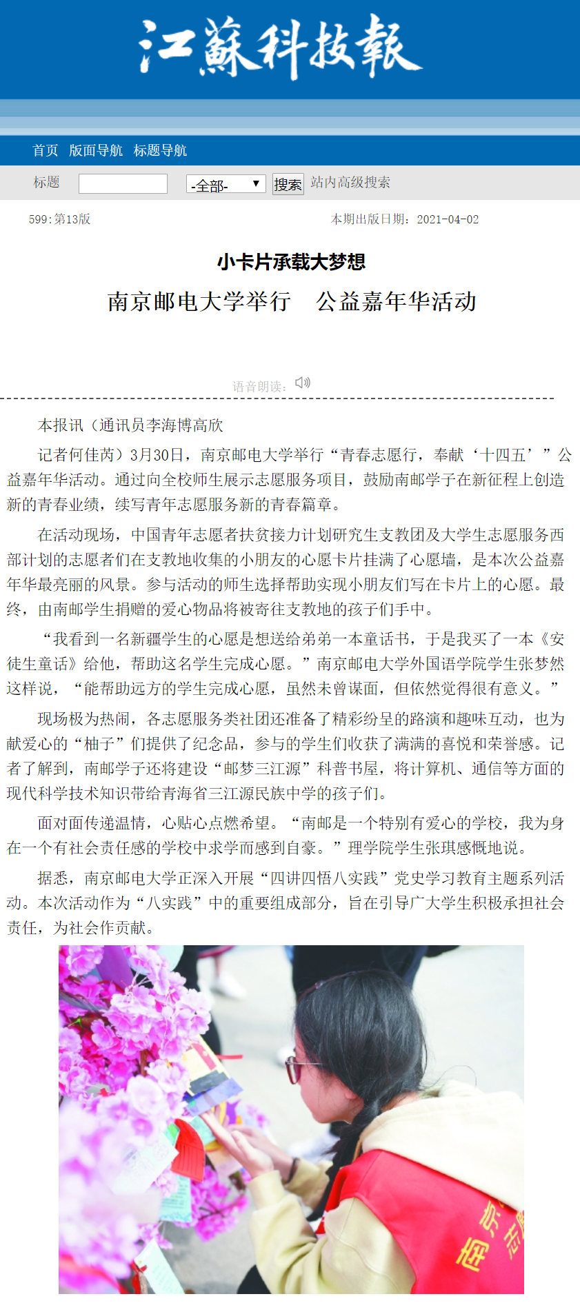 【江苏科技报】南京邮电大学举行 公益嘉年华活动