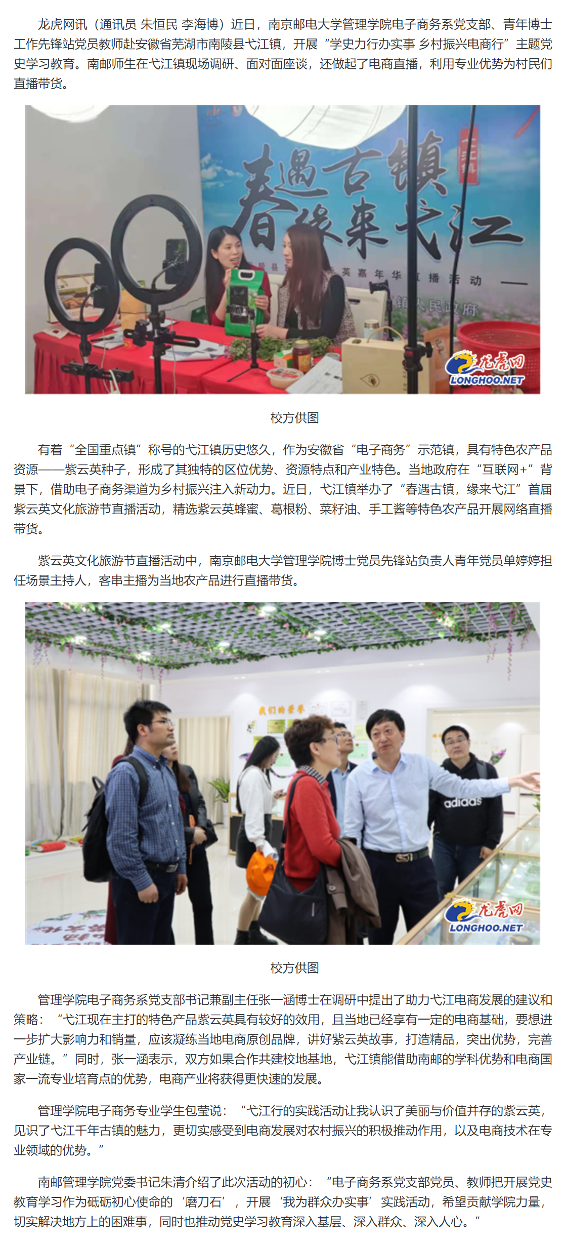 【龙虎网】南京邮电大学:乡村振兴电商行 为村民直播带货