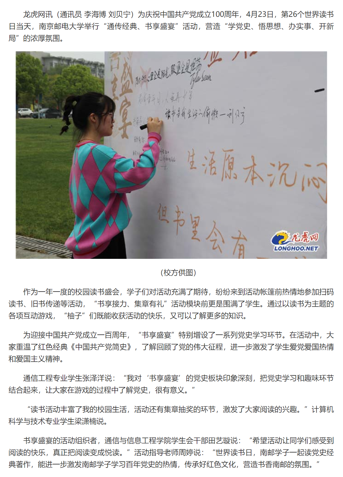【龙虎网】世界读书日 南邮学子读党史、守初心