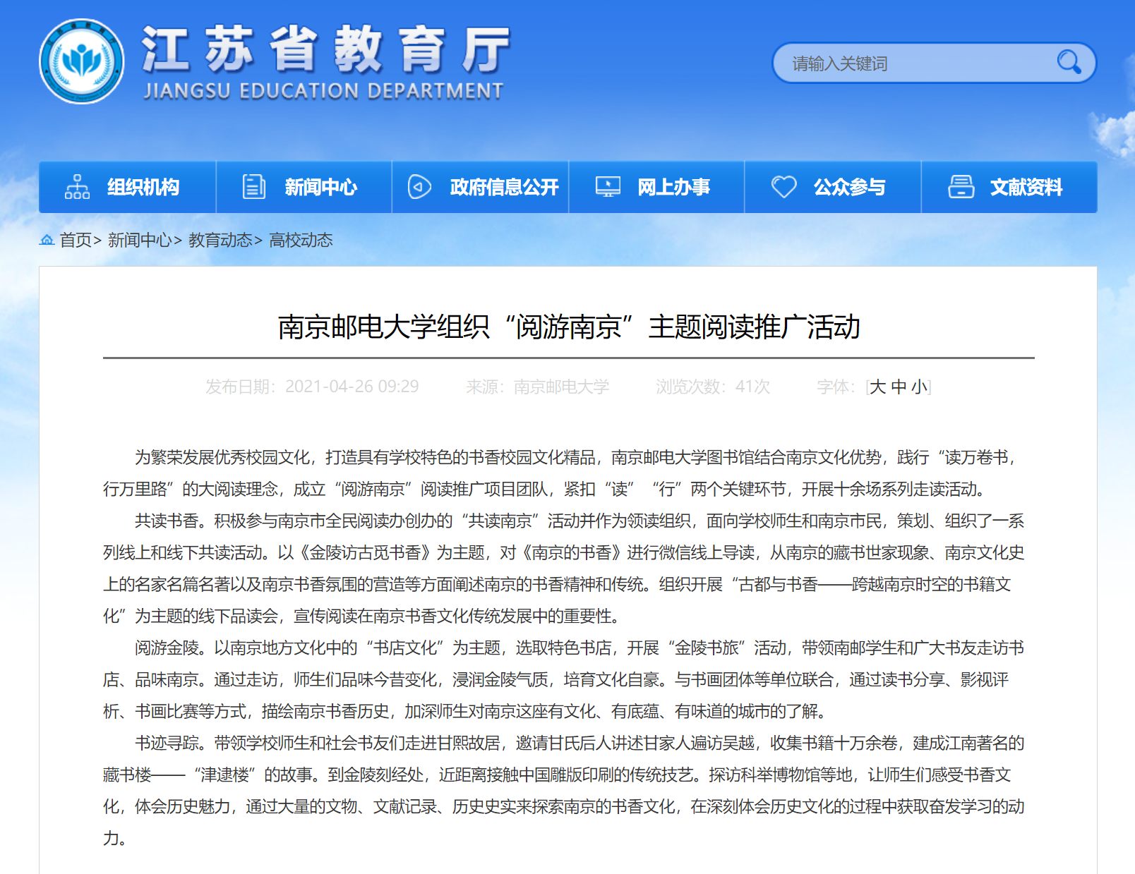 【省教育厅官网】南京邮电大学组织“阅游南京”主题阅读推广活动