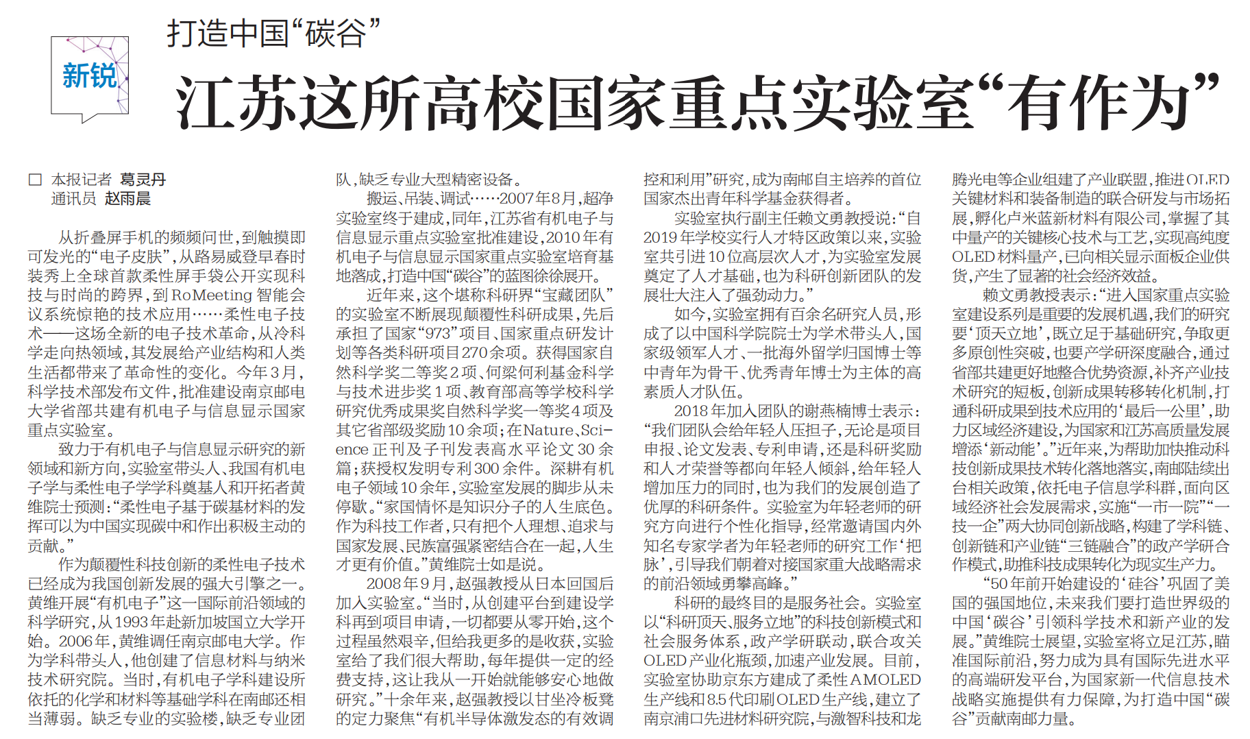 【新华日报】打造中国“碳谷” 江苏这所高校国家重点实验室“有作为”