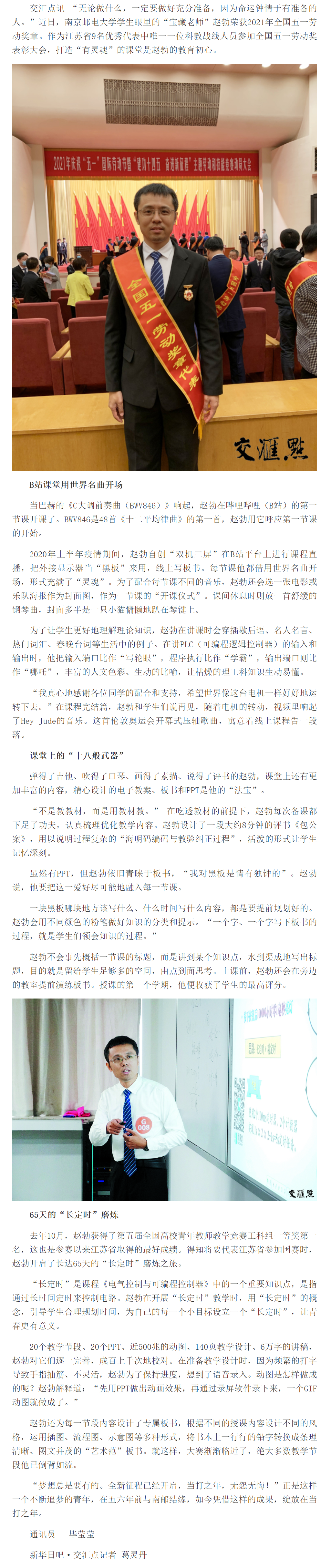 【新华日报客户端】让课堂“有灵魂”,这位“宝藏老师”获全国五一劳动奖章