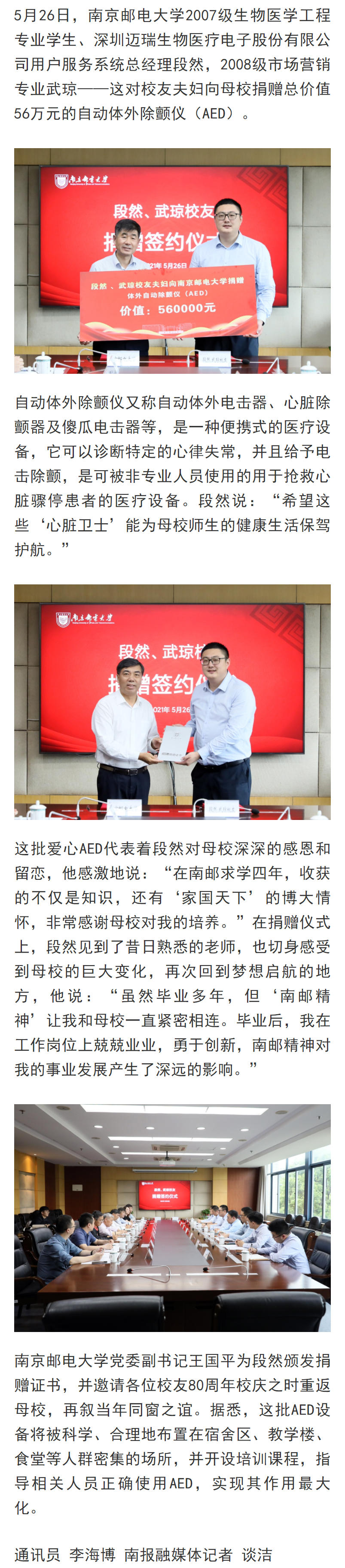 【南京日报客户端】为生命护航!南邮校友向母校捐赠“心脏卫士”