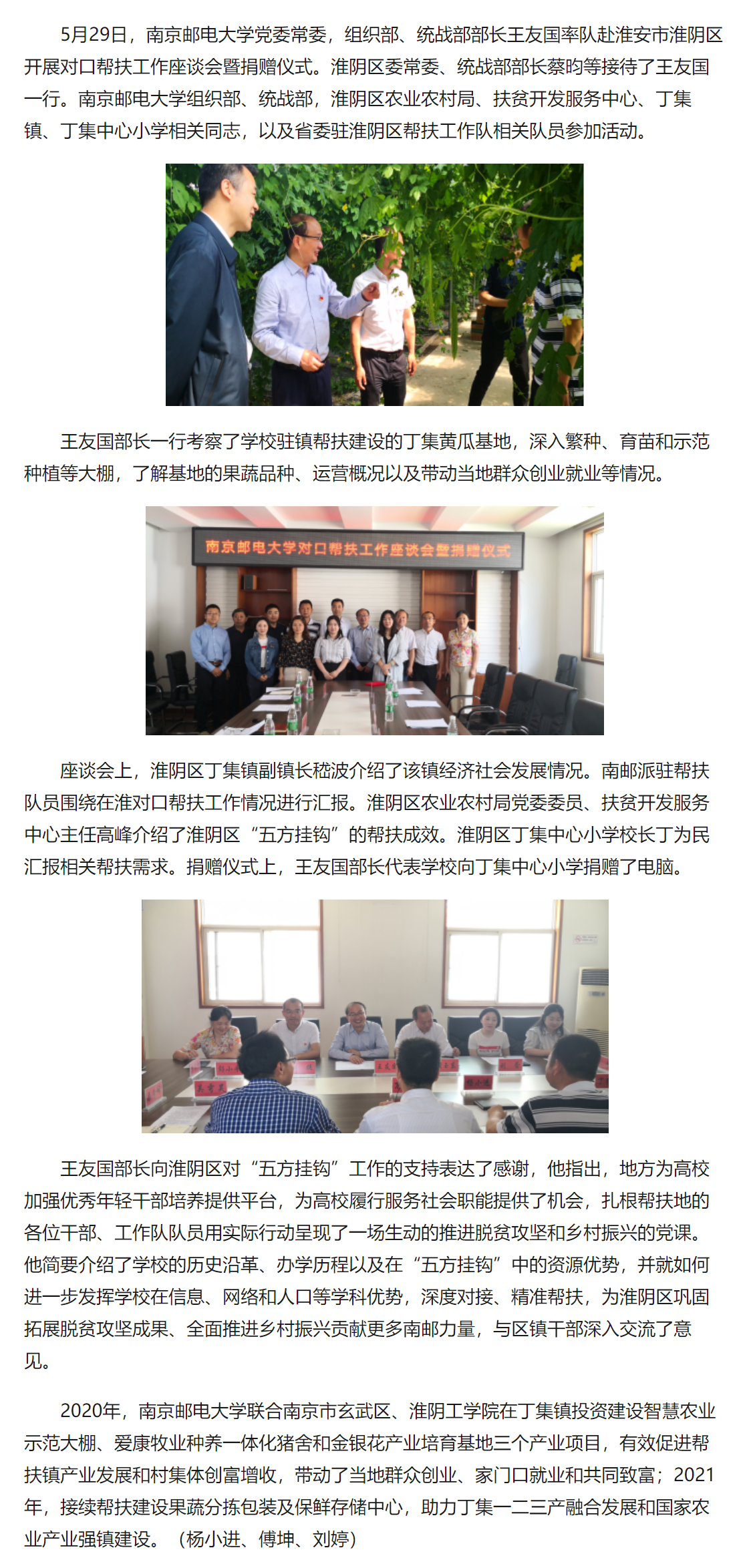 【中国江苏网】南京邮电大学对口帮扶工作座谈会暨捐赠仪式在淮举行