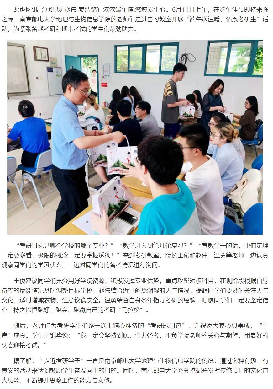 【龙虎网】一考高“粽” 南邮为备战考研学生送粽子