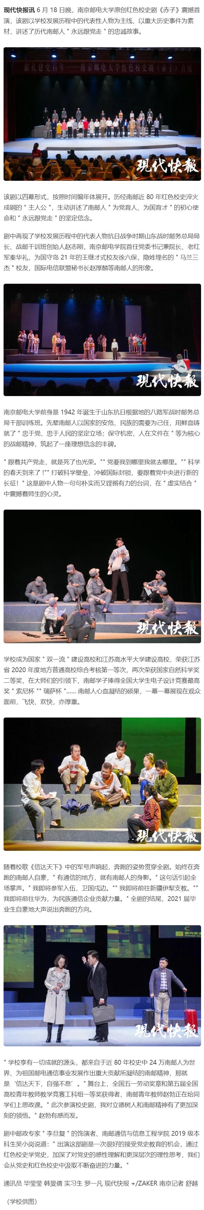 【现代快报全媒体】原创红色校史剧《赤子》首演!讲述南邮人近80年的忠诚故事