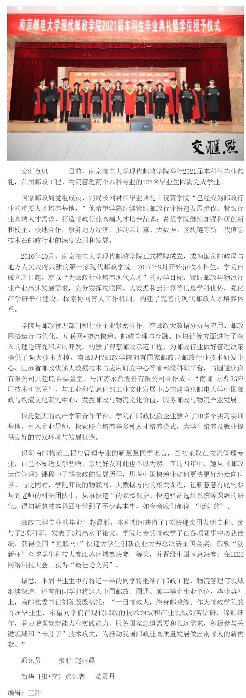 【新华日报客户端】南邮首届“现代邮政”本科生毕业了!