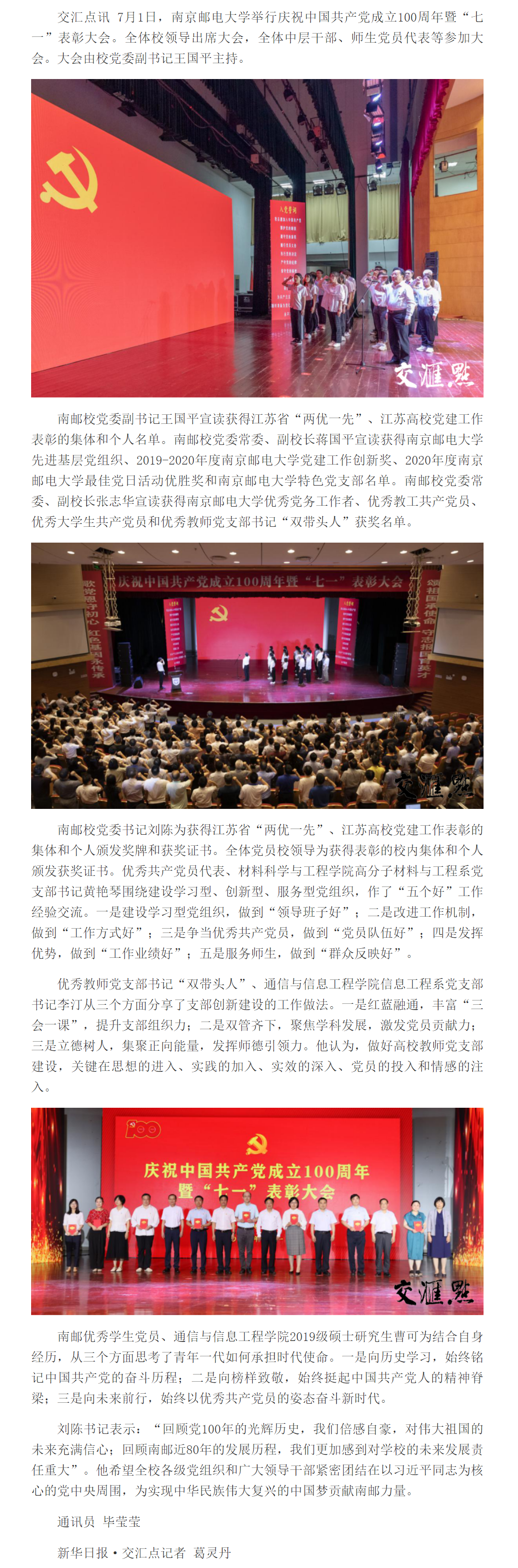 【新华日报客户端】南京邮电大学举行“七一”表彰大会