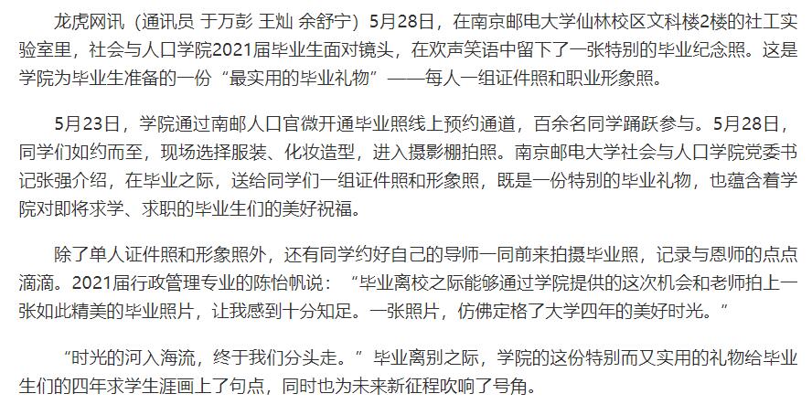 【龙虎网】拍摄美美证件照和职业形象照 南邮为学生送上“最实用毕业礼物”
