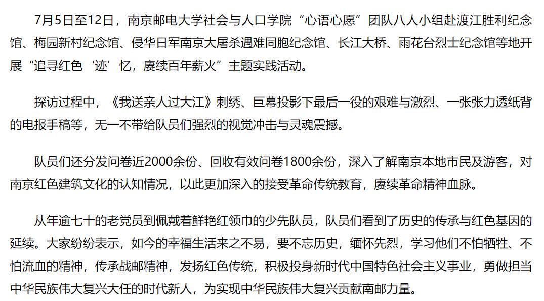 【人民网】南邮社会与人口学院开展红色主题实践活动
