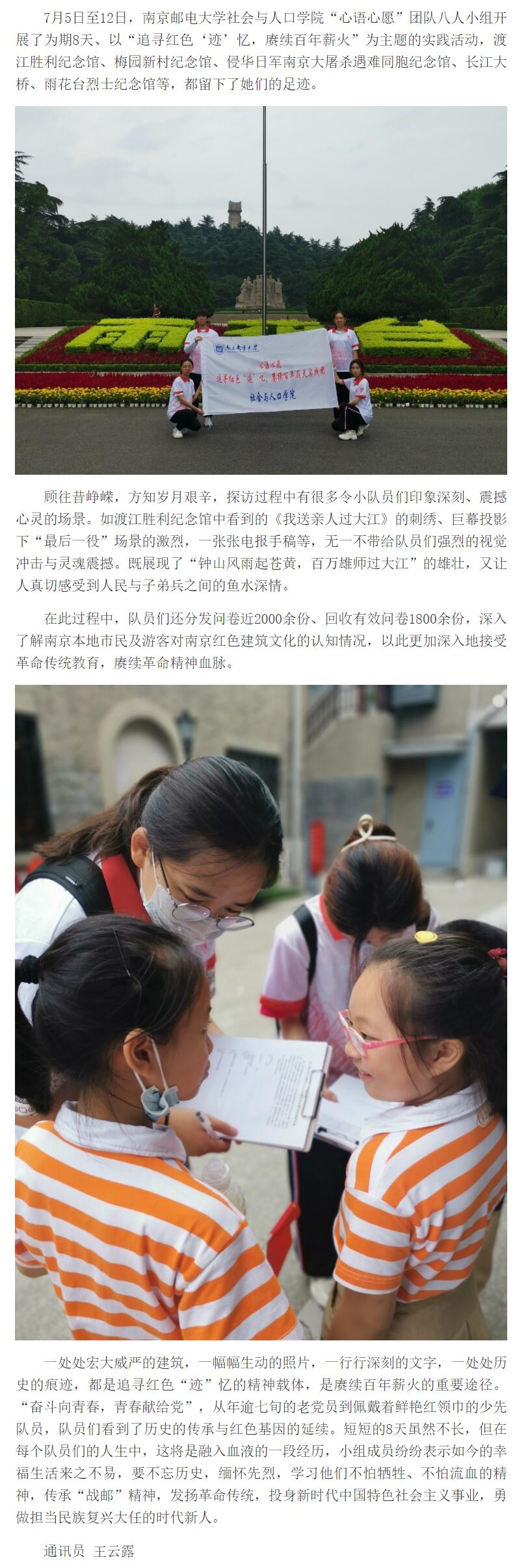 【新华日报客户端】南京邮电大学社会与人口学院开展暑期实践活动