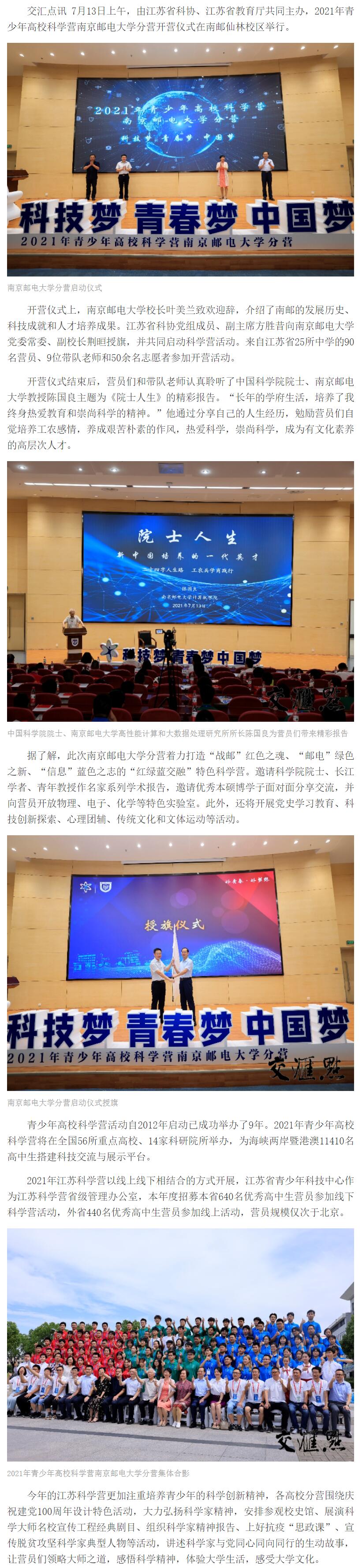 【新华日报客户端】2021年青少年高校科学营南京邮电大学分营开营