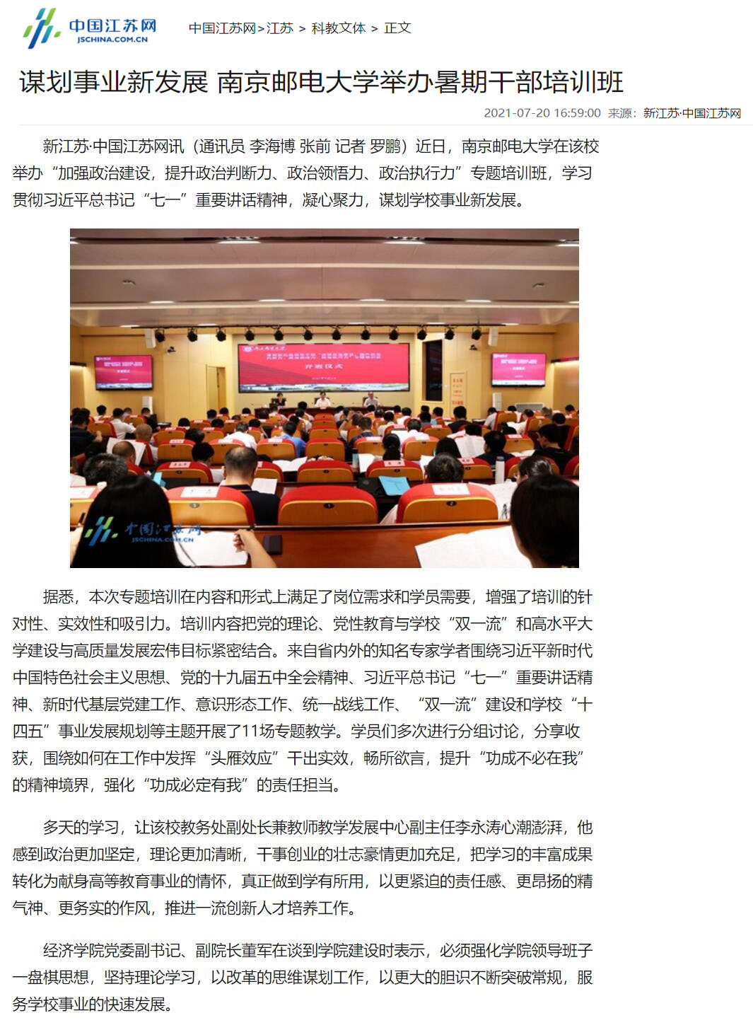 【中国江苏网】谋划事业新发展 南京邮电大学举办暑期干部培训班