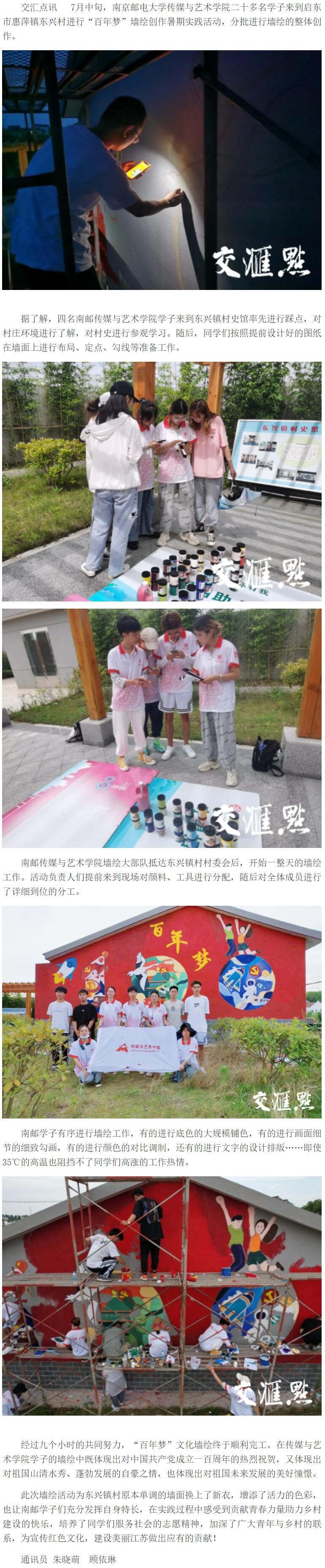 【新华日报客户端】九小时手绘“百年梦想”,南邮学子走进启东乡村作画