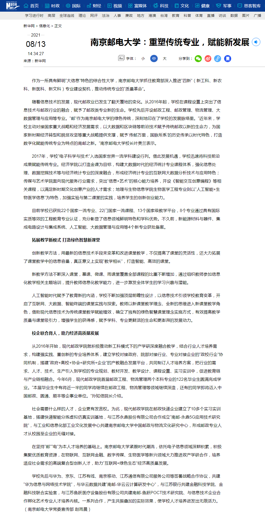 【新华网】南京邮电大学:重塑传统专业,赋能新发展