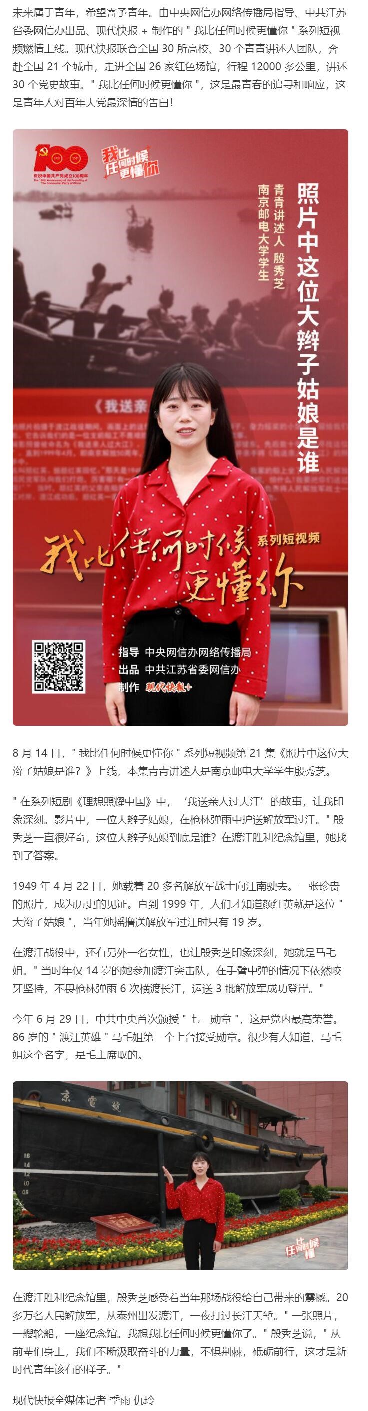 【现代快报全媒体】我比任何时候更懂你丨照片中这位大辫子姑娘是谁?