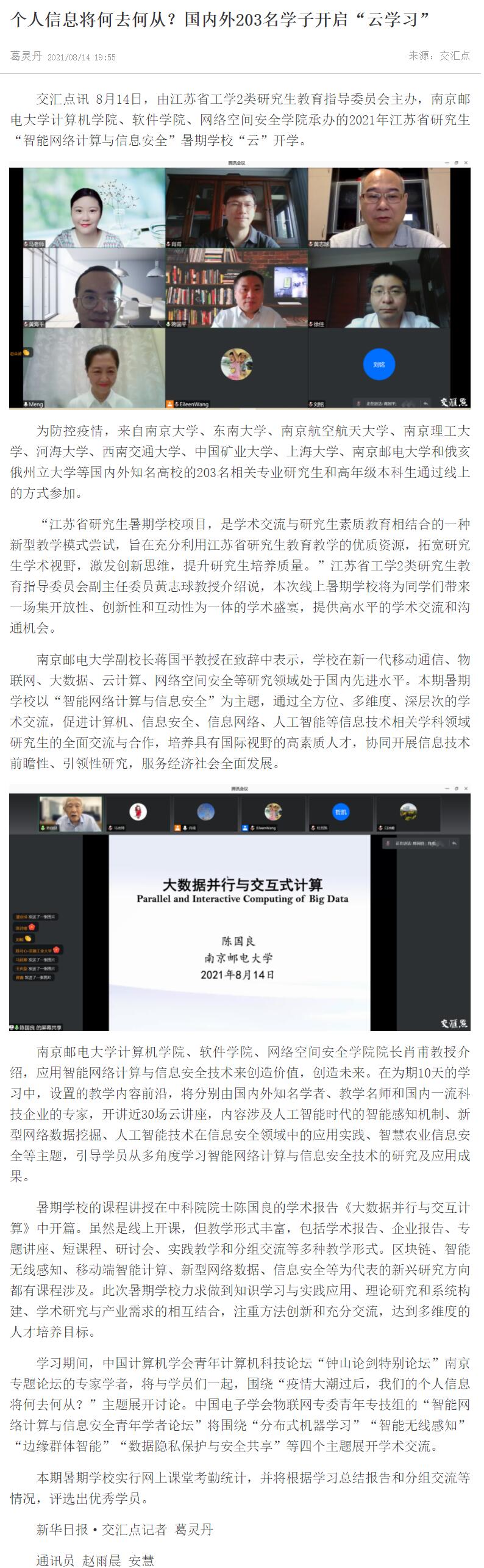 【新华日报客户端】个人信息将何去何从?国内外203名学子开启“云学习”