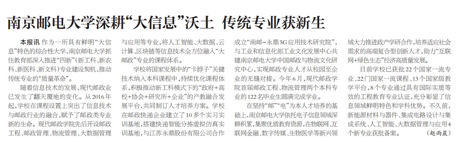 【人民邮电报】南京邮电大学深耕“大信息”沃土 传统专业获新生