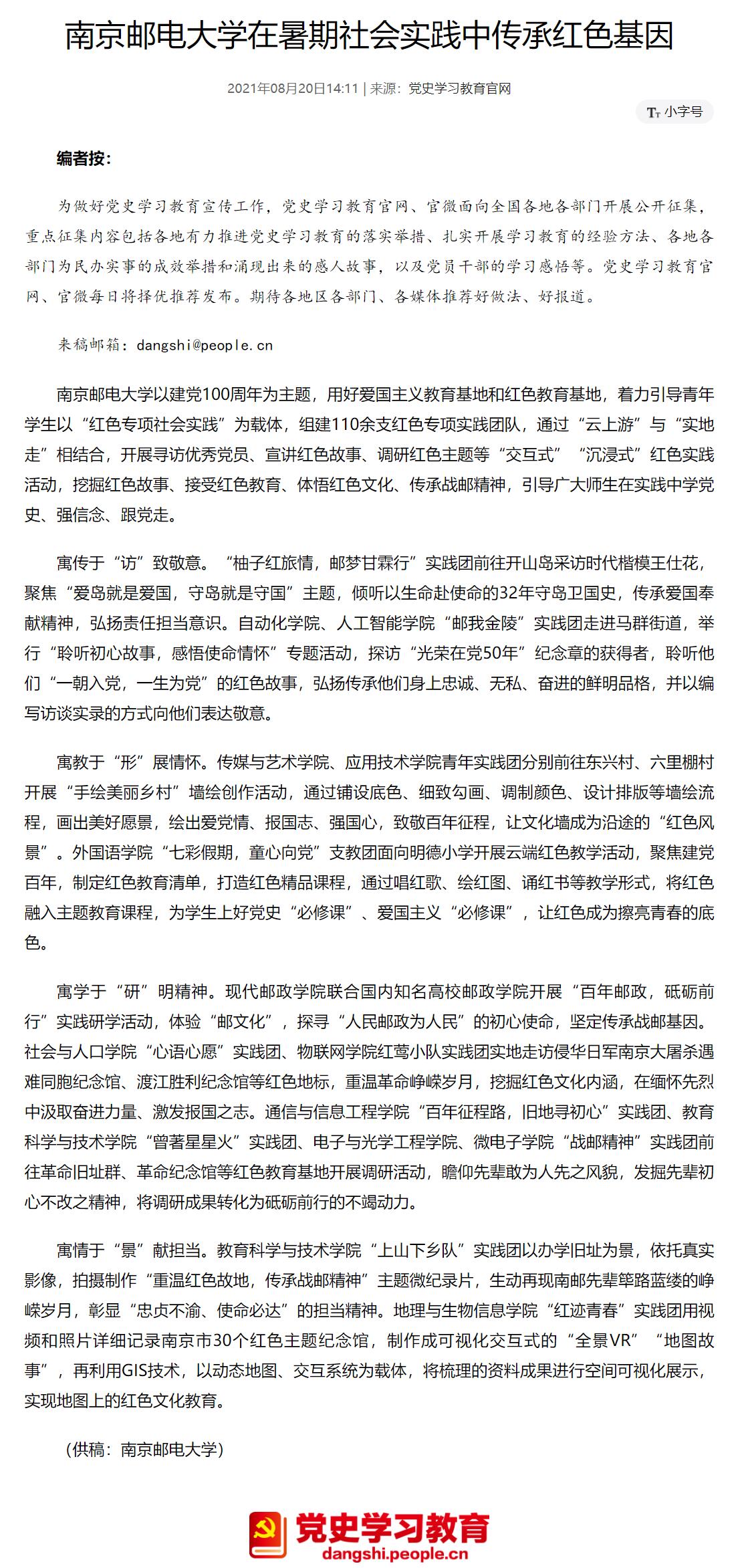 【党史学习教育官网】南京邮电大学在暑期社会实践中传承红色基因