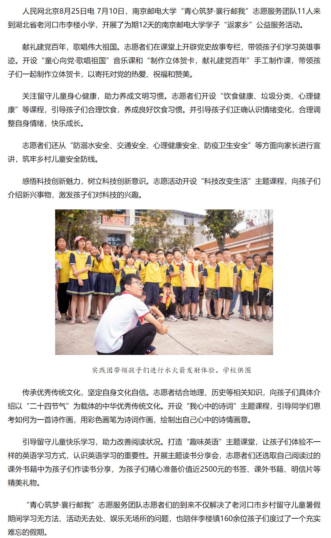 【人民网】南京邮电大学:走进乡村小学,丰富留守儿童暑期生活
