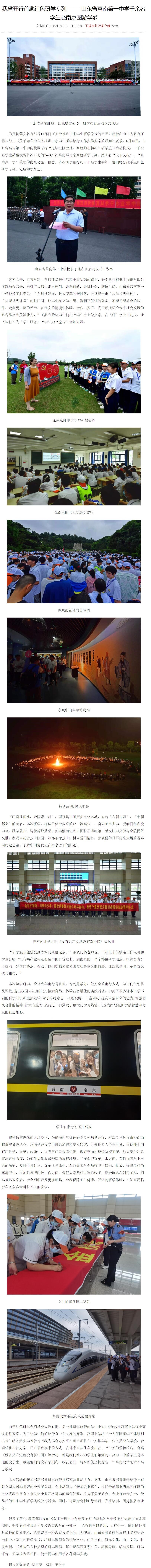 【琅琊新闻网】我省开行首趟红色研学专列 —— 山东省莒南第一中学千余名学生赴南京圆游学梦