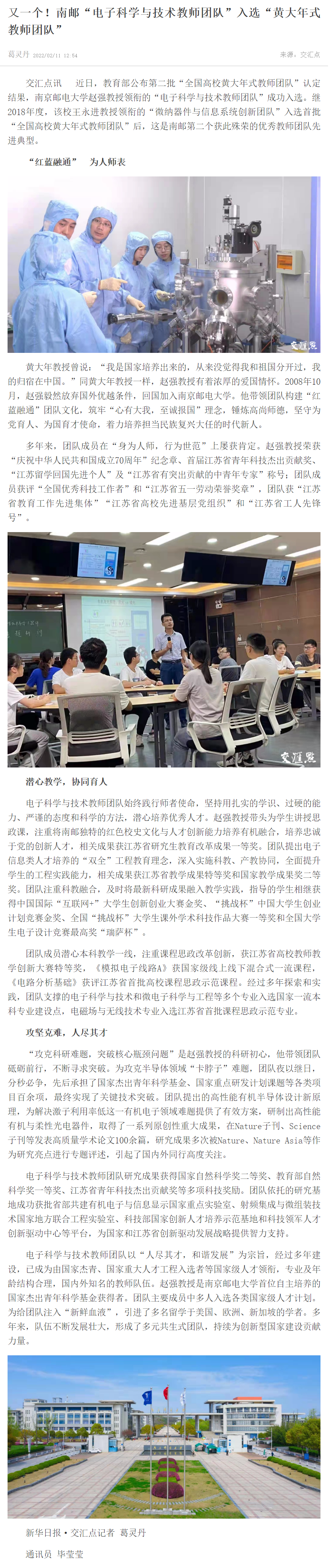 【新华日报客户端】又一个!南邮“电子科学与技术教师团队”入选“黄大年式教师团队”