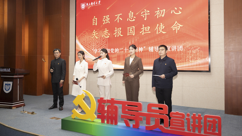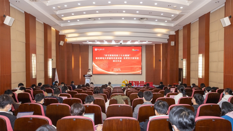 为深入学习宣传贯彻党的二十大精神,切实把我校大学生的思想统一到党的二十大精神上来,12月9日下午,“学习贯彻党的二十大精神”辅导员宣讲团、优秀学子宣讲团成立大会在仙林校区中天科技报告厅举行。校党委常委、副校长荆晅出席大会,相关职能部门负责人、二级学院党委副书记、思政课导师代表、辅导员宣讲团指导教师、全体宣讲团成员、2022年新入职辅导员、校第六届大学生年度人物参加会议。