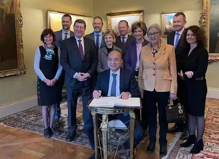 2022年12月14日,瑞士日内瓦州政府领导班子成员与即将卸任的赵厚麟秘书长及夫人相聚,赵厚麟在政府留言簿题词